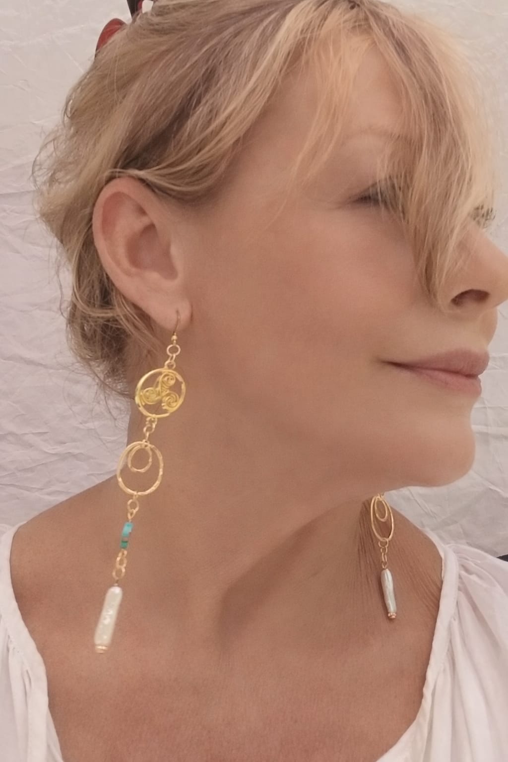 Artistic "Eccentric" Design: A striking combination of golden triskelion swirls and geometric hoops that create a sense of constant, rhythmic movement.